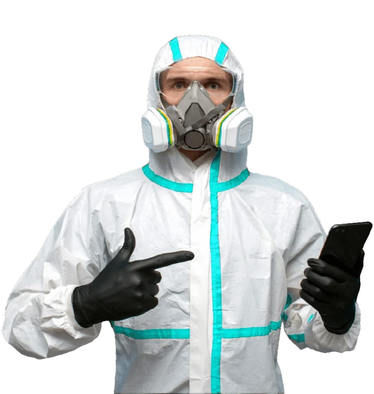 2. средства защиты включают в себя хлопчатобумажный комбинезон с капюшоном, перчатки, калоши и противогаз или респиратор. Это предотвращает попадание дезинфицирующего средства на кожу, в глаза и внутренние органы.
